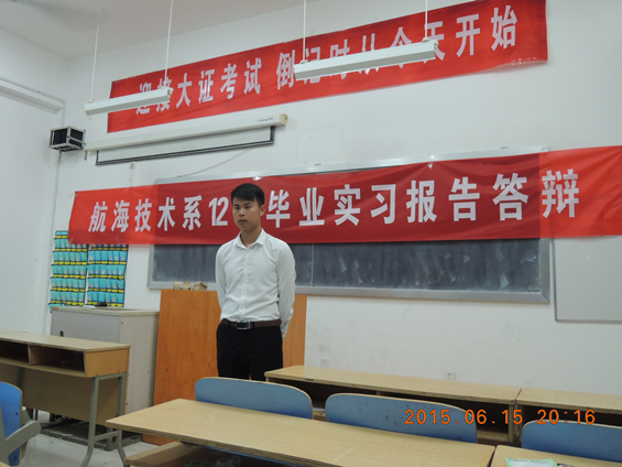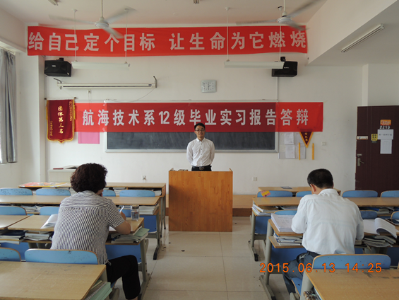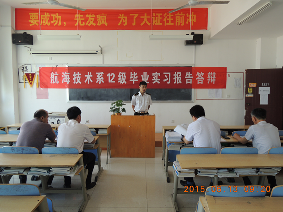 毕业设计与论文是高等院校教学过程的重要环节,而实习报告的撰写与答辩又是高职院校教学工作的重要组成部分。为了更好地做好2012级学生的答辩工作,航海技术系在6月13日至15日组织学生进行了实习报告答辩工作。由于我系首次组织这项工作,之前半年就对学生进行了布置指导,学生做了较充分的准备。航海技术系也希望把实习报告答辩工作做好做扎实,为今后各年级毕业答辩提供经验。