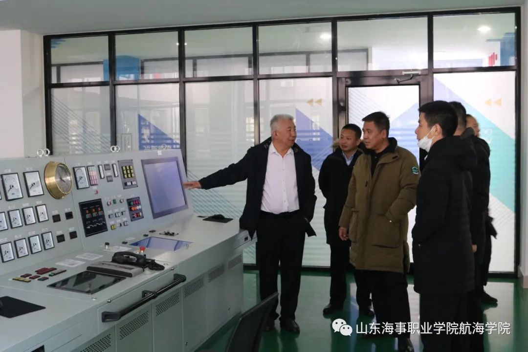 会后,华洋海事中心有限公司劳务事业部总经理刘维一行在学校领导的陪同下实地参观了学校航海虚拟仿真实训基地、国际海洋工程培训中心等实训场所。