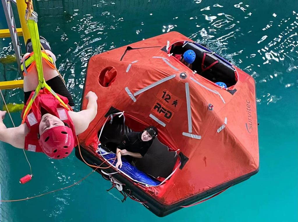 首期海上交通安全技能培训班历时3天、共培训学员20人。上课期间,专业教师细致地为学员讲解安全作业、海上求生、直升机营救等专业知识;学员们认真学习,利用专业设备进行训练,完全掌握培训理论和实操技能。参训学员全部通过考试,圆满结业。