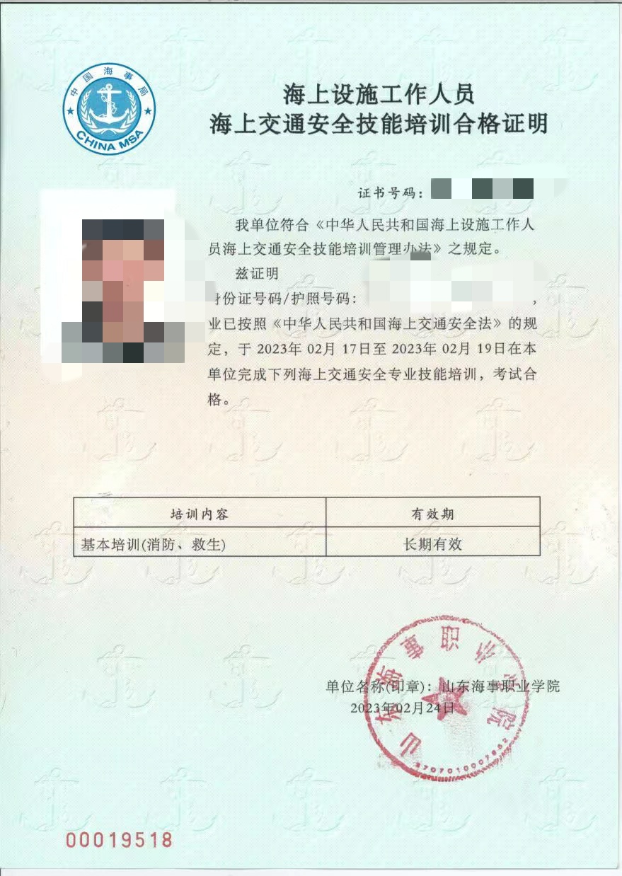 近日,潍坊辖区首期海上设施工作人员海上交通安全技能培训在金年会圆满完成培训,金年会为参加培训的学员签发了证书。