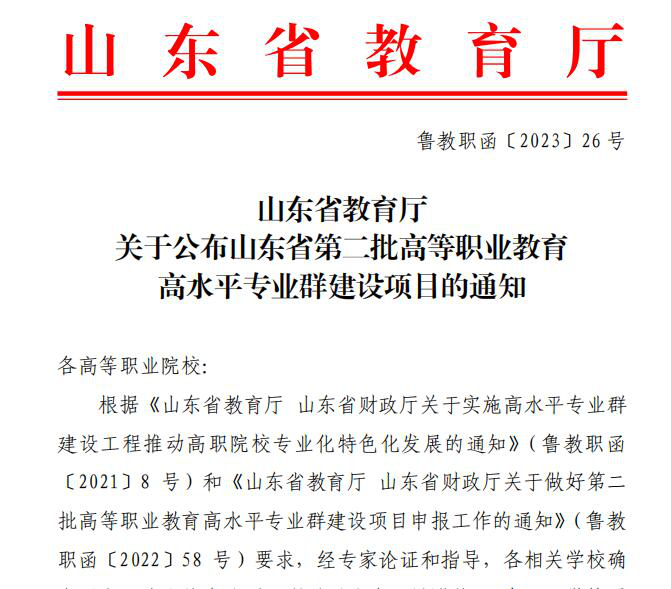 近日,山东省教育厅发布了《关于公布山东省第二批高等职业教育高水平专业群建设项目的通知》(鲁教职函〔2023〕26号),金年会航海技术专业群获批山东省第二批高等职业教育高水平专业群建设项目。