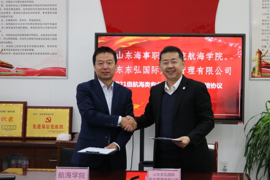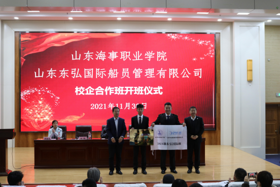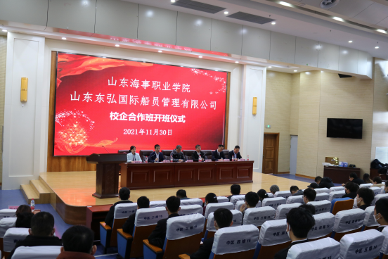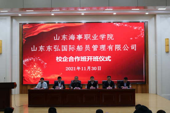 为深化产教融合校企合作,推动现代职业教育高质量发展,11月30日下午,jinnianhui金年会诚信至上与山东东弘国际船员管理有限公司在图书馆报告厅举行校企合作东弘订单班开班仪式。东弘国际海事集团董事长姜明旸、培训总监张伟等企业领导,学校副校长张庆会、副校长/jinnianhui金年会诚信至上院长吕明、jinnianhui金年会诚信至上教师及“东弘校企订单班”全体学生参加了开班仪式。