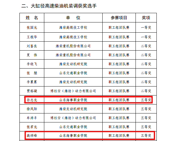 本次比赛,jinnianhui金年会诚信至上派出了由孙志元老师、高祥峰老师组成的教师组和由赵锦焜同学、刘琳同学组成的学生组两支参赛队伍,由领队兼副裁判长陈勇老师带队三次去潍柴职工大学培训学习。经过激烈的3天理论考试和现场实践操作的综合比赛,在46个参赛队伍中,教师组和学生组都取得三等奖的好成绩。赵锦焜和刘琳同学还获得了竞赛“优秀选手”的荣誉称号,并获得潍柴集团“人才绿卡”资格,可以免试引进潍柴集团服务。