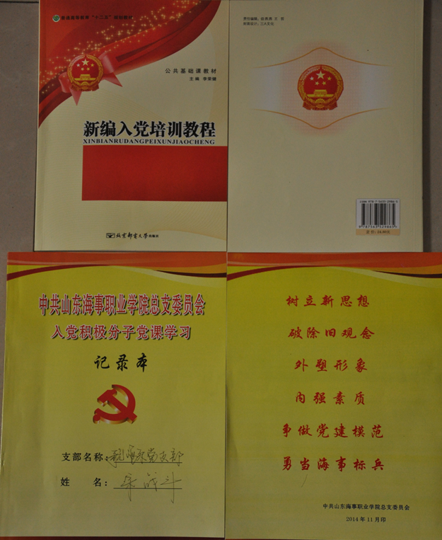 (图七) 入党积极分子学习教材与特制的记录本展示