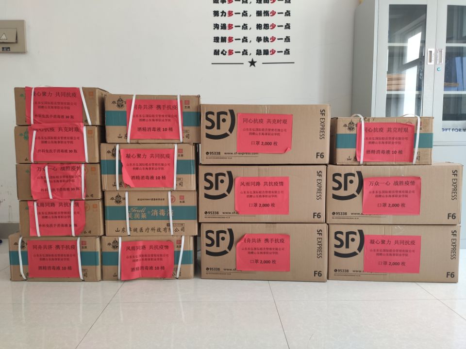 在全国上下共同抗击疫情的关键时刻,3月29日上午,山东东弘国际船员管理有限公司船员部经理王少雷、刘心康代表公司向jinnianhui金年会诚信至上捐赠了10000只医用外科口罩、2.5升75%酒精消毒液60桶、500毫升75%酒精免洗消毒液120瓶。两位公司领导表示,作为与jinnian金年会jinnianhui金年会诚信至上长期合作的企业伙伴,在学校强化疫情防控和相对封闭的关键时期,他们代表公司捐赠防疫物资是应尽的社会责任,希望尽公司的绵薄之力助力金年会打赢疫情防控阻击战。