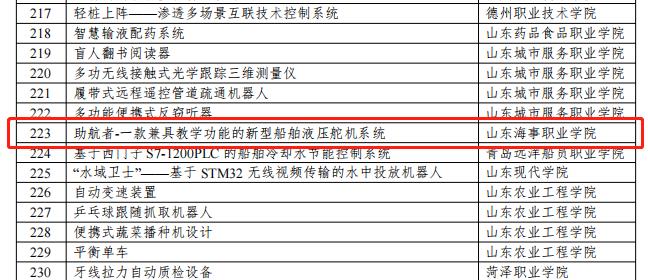 8月22日-25日,第二十届山东省大学生机电产品创新设计竞赛在日照职业技术学院举行。金年会jinnianhui金年会诚信至上参赛项目《助航者-一款兼具教学功能的新型船舶液压舵机系统》获得大赛二等奖。