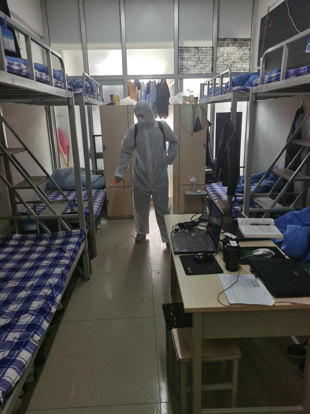 通过消杀与宣传强强联合,有效阻断病毒的传播途径,告诫学生疫情防控重要性的同时提醒同学们共同维护安全、卫生与整洁的宿舍环境。我们坚信一定能够打赢疫情防控阻击战!