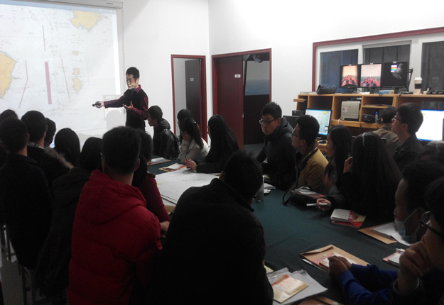 我院的青少年科普基地航海体验馆于2014年12月12日挂牌后,迎来了首批体验者。港航系的同学都是非航海类专业,对航海知识和航海实训设备了解甚少。航海科普基地建立并挂牌之际,恰逢港航系党支部入党积极分子培训之时,当他们了解到航海系科普基地体验馆建立的消息后,立即组织其入党积极分子培训班的同学们40多人,到航海体验馆进行参观体验。他们每到一处都感受到了航海知识的丰富性,体验到了航海行驶的各种环境,表现了极大的好奇心,使学生们有了对航海知识有了感性认识。