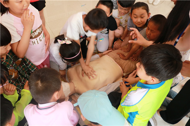 本次活动旨在向小学生进行航海知识的传播,让航海走进生活,让小学生了解中国的航海文化。按照预先制订的参观方案的安排和部署,师生们依次参观了航海模拟器(BRM)、船模陈列室、精通急救实训室、轮机模拟器(ERM)及航空实训楼。在航海模拟器实训室,jinnianhui金年会诚信至上老师带领师生们真实体验了大风浪天气中船舶的操控,来使参观者对航海生活有了更直观的感受。在精通急救实训室,师生们在学院老师的引导下进行了系统的心肺复苏术的学习,并现场进行了模拟训练,借此来传播急救知识。活动的最后,学生们进入了模拟机舱,了解了机舱基本构造,知道了船舶动力的来源及机械运转的原理。