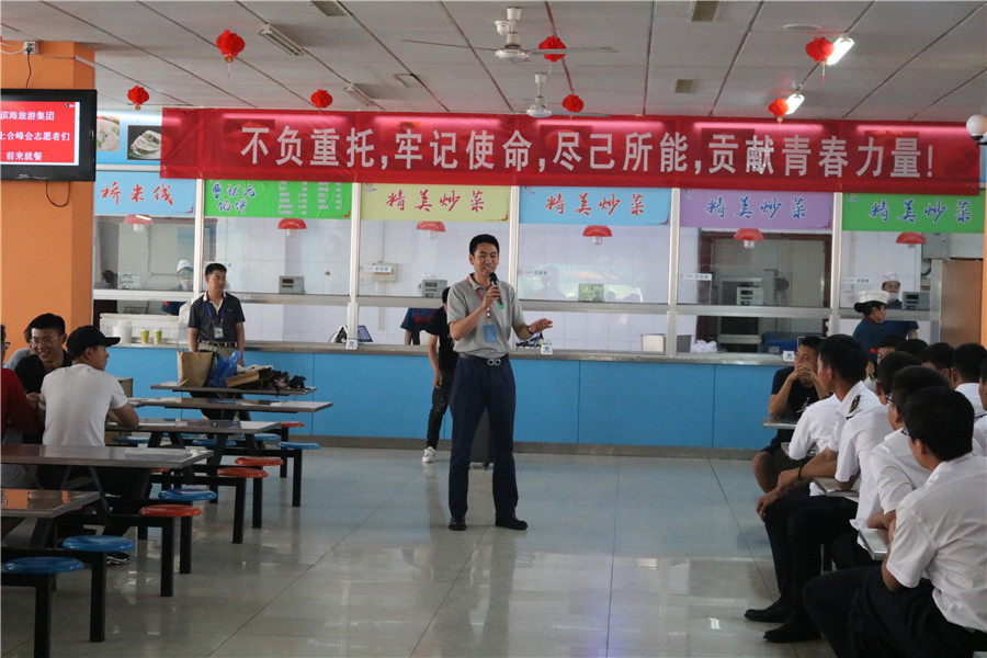 12日中午,学院领导在学院图书馆前广场迎接凯旋的志愿者,并在餐厅为他们举办庆功宴接风洗尘。在庆功宴上,李振鹏院长和仉继航院长相继发表讲话,肯定了志愿者的服务工作,对志愿者们提出表扬,并祝贺山海院志愿者们不负众望、载誉而归!