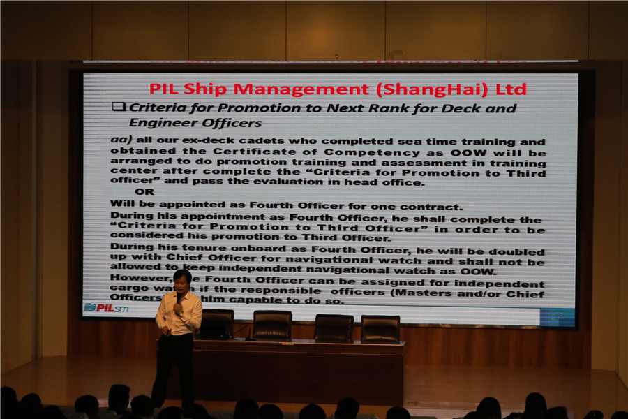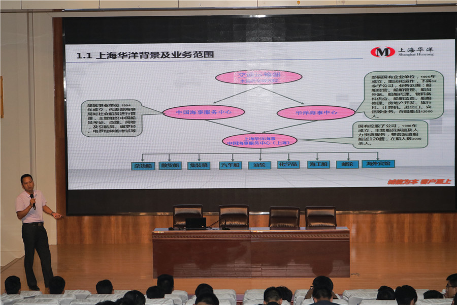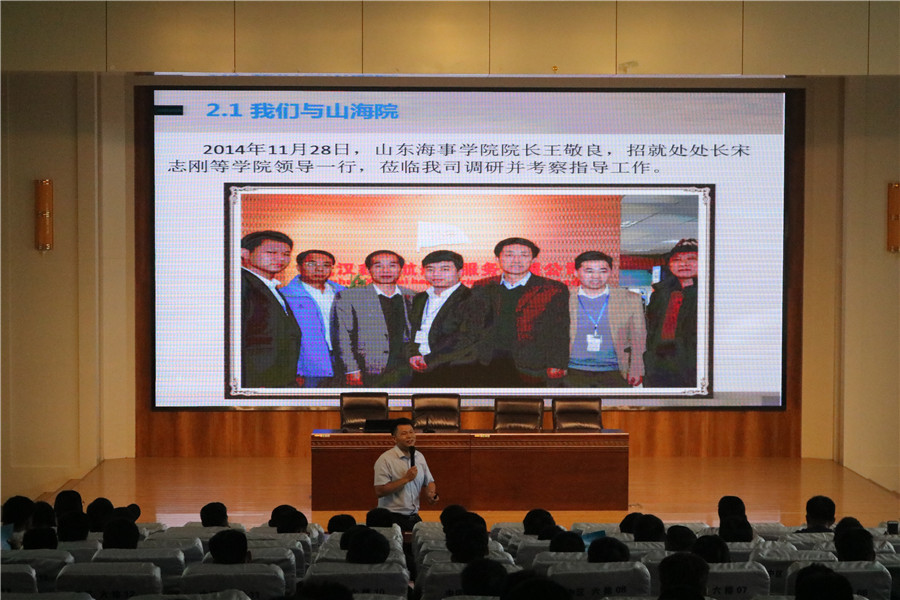 为提升学生技能,加深行业认识,jinnianhui金年会诚信至上企业校园招聘宣讲会于9月12日下午在图书馆报告厅举行。此次宣讲会邀请了武汉鑫汇航船务公司、威海国际经济技术合作股份有限公司、青岛颐和润丰国际船舶管理有限公司、新加坡ISM船舶管理公司船员公司、上海鹤圣船舶科技有限公司、山东海运股份有限公司、上海华洋海事服务有限公司及厦门兴诺信船务有限公司八家企业负责人来校,为在校生做企业宣讲。jinnianhui金年会诚信至上院长助理刘继峰、全体辅导员老师及2016级航海类专业全体同学参加了此次宣讲会。