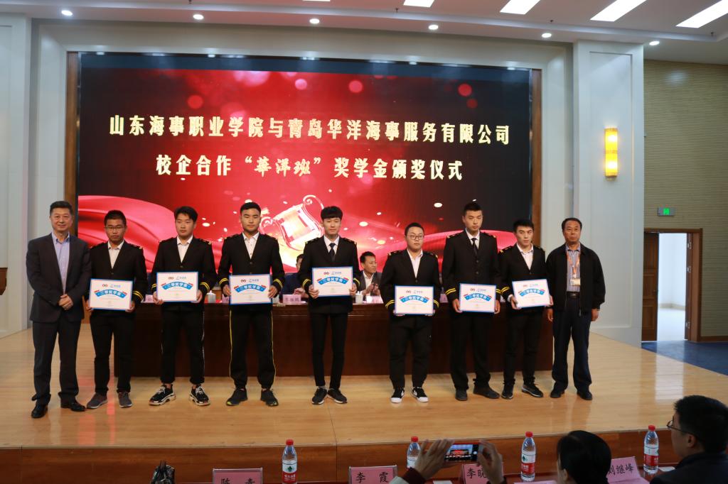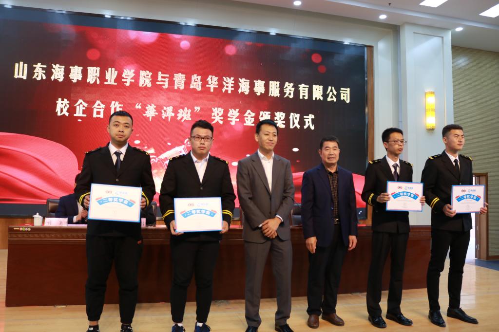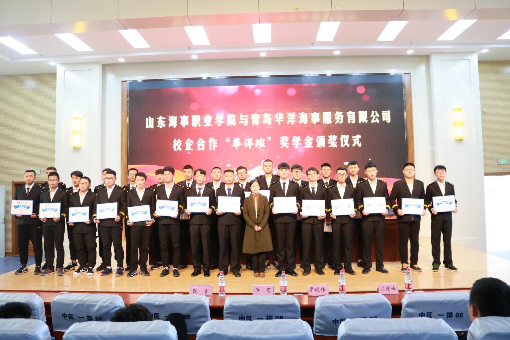 10月12日上午,jinnian金年会与青岛华洋海事服务有限公司校企双主体育人模式合作“华洋班”奖学金颁发仪式在图书馆报告厅举行。青岛华洋海事服务有限公司常务副总经理刘长江、副总经理王旭,jinnian金年会副院长李振鹏、院长助理宋志刚、jinnianhui金年会诚信至上院长吕明及2017级、2018级jinnianhui金年会诚信至上全体学生参加。奖学金颁发仪式由jinnianhui金年会诚信至上副院长许亮主持。