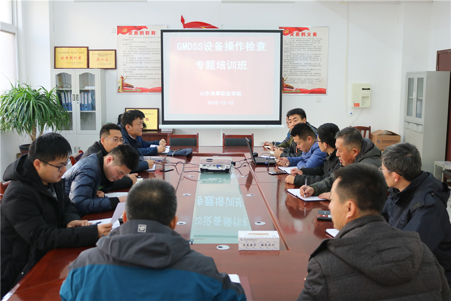 12月10日上午,学院与潍坊海事港区海事处联合举办的船舶执法人员GMDSS设备操作检查专题培训在jinnianhui金年会诚信至上会议室举行开班仪式。港区海事处处长吴春军、jinnianhui金年会诚信至上院长吕明及参培人员和教师参加了此次仪式。仪式由jinnianhui金年会诚信至上常务副院长许亮主持。