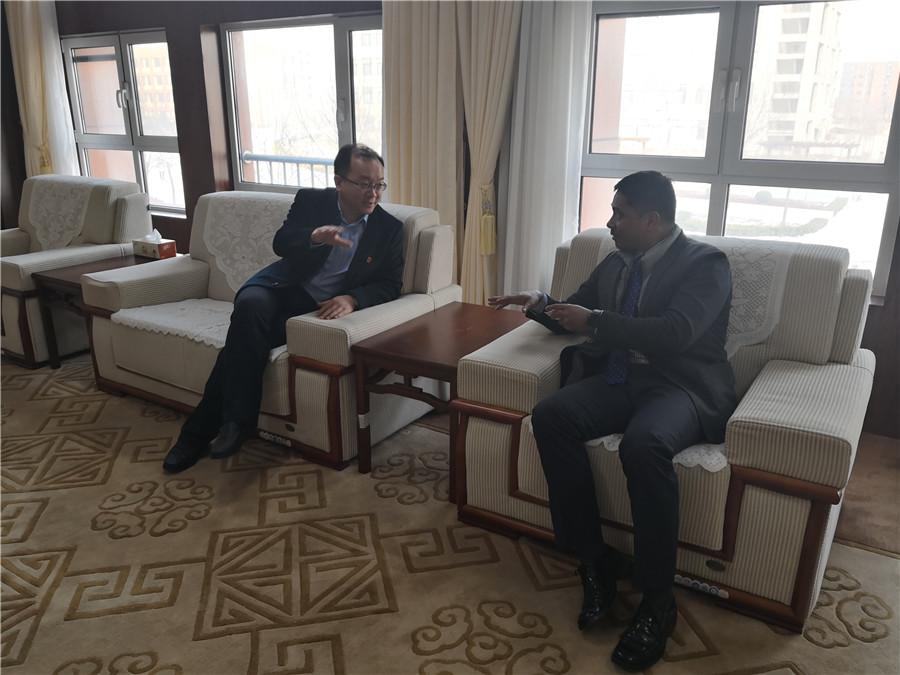 李广敬局长代表潍坊市教育局、潍坊市政府向Hart副总裁到访表示热烈而诚挚的欢迎,并向他介绍了jinnian金年会的办学发展情况。