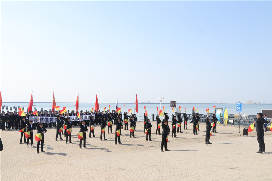 随后jinnianhui金年会诚信至上旗语队进行了一场气势磅礴的旗语表演,犹如天下风云出我辈,尽显航海学子风采。最后,参加活动的师生们集体向抗击外寇为国捐躯的海疆战士默哀,并将洁白的菊花缓缓洒入大海,以告慰海上英灵,寄托哀思。
