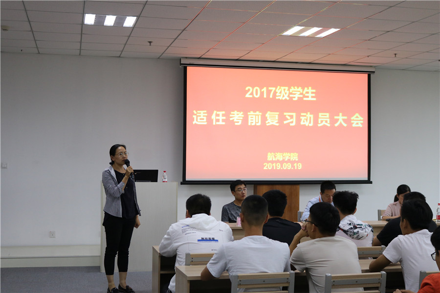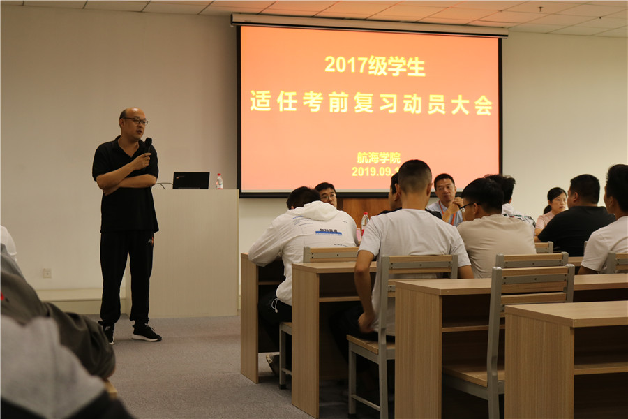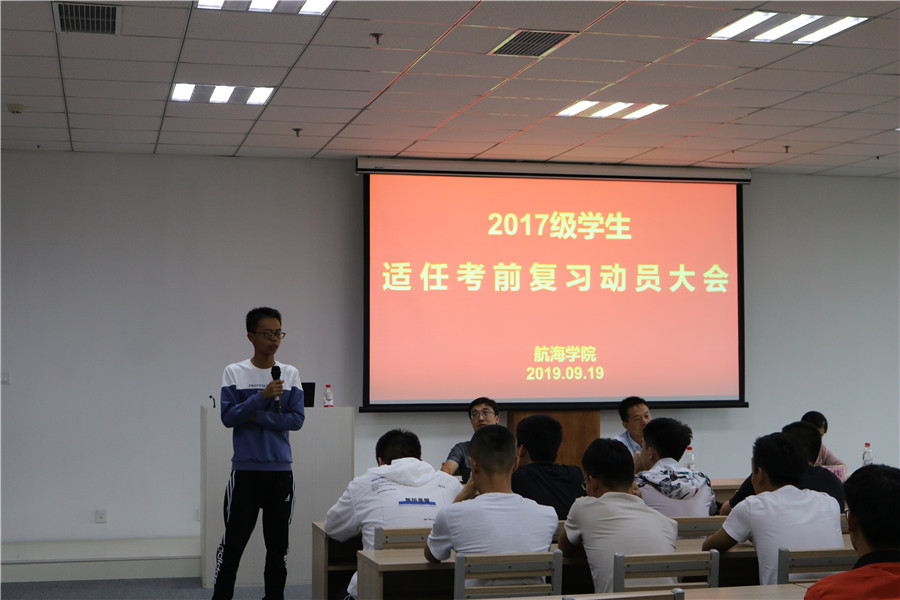 为做好2017级航海类学生海船船员适任考试的复习准备工作,9月19日下午,jinnianhui金年会诚信至上在图书馆信息化教室组织召开2017级参加海船船员适任考试报名学生的考前复习动员大会。jinnianhui金年会诚信至上院长吕明、院长助理李晓伟、刘继峰、各科任课老师及2017级全体航海学子参加了本次动员大会。会议由李晓伟老师主持。