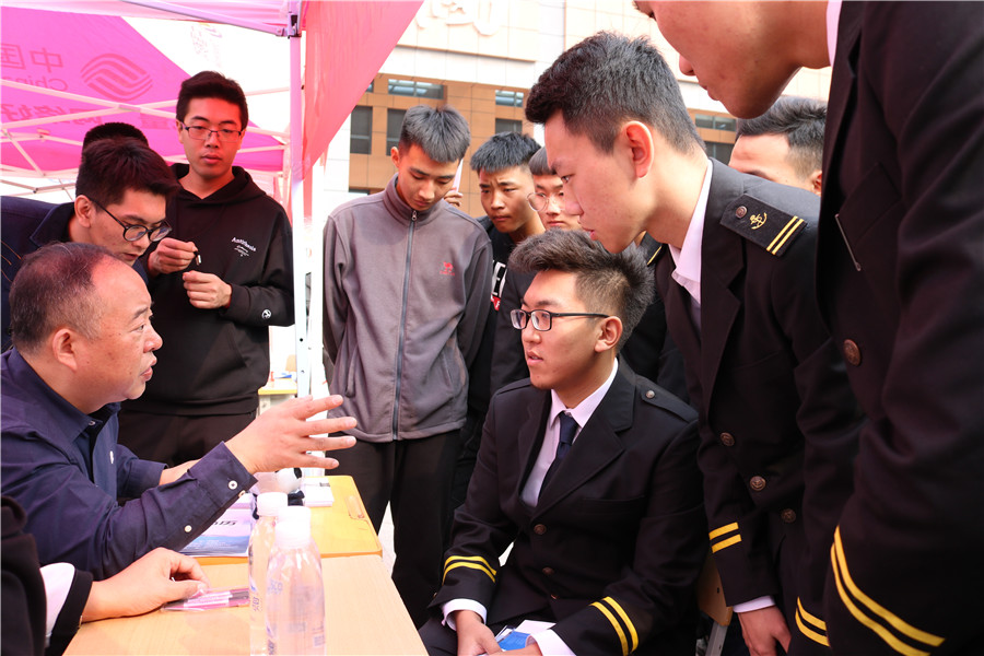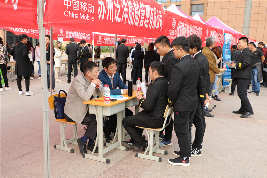 10月23日上午,jinnian金年会2020届航海类专业毕业生就业双选会在图书馆南广场举行。此次双选会共邀请青岛华洋海事服务有限公司、中国远洋海运船员管理有限公司等近40家航海类企业,共提供就业岗位842个,供需比例达1:4.8。