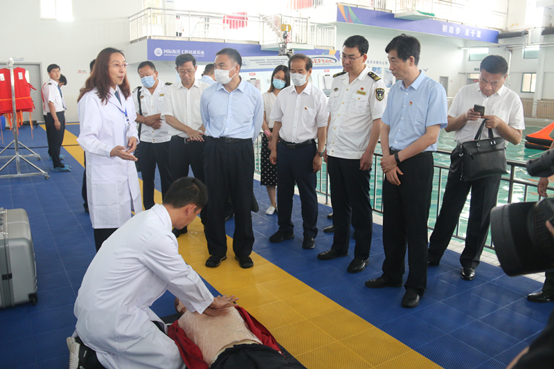 仪式结束后,参会人员依次参观了海上文明实践馆、尚水文明讲堂、水上求生体验馆和船舶科普体验场地,了解了文明实践基地总体概况、各场馆、站点分布及讲师团队等总体情况,观摩了船舶模拟驾驶、跳水求生、心肺复苏及救生衣穿戴等演示项目。