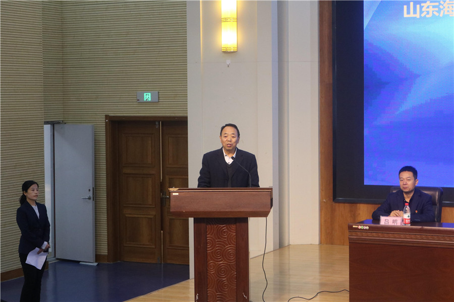 宋志刚副校长代表学校对青岛华洋海事服务有限公司诸位领导的到来表示热烈欢迎,并向企业对学院现代学徒制试点工作的支持和帮助表示感谢,向参与现代学徒制试点班的全体师生表示衷心的祝贺!