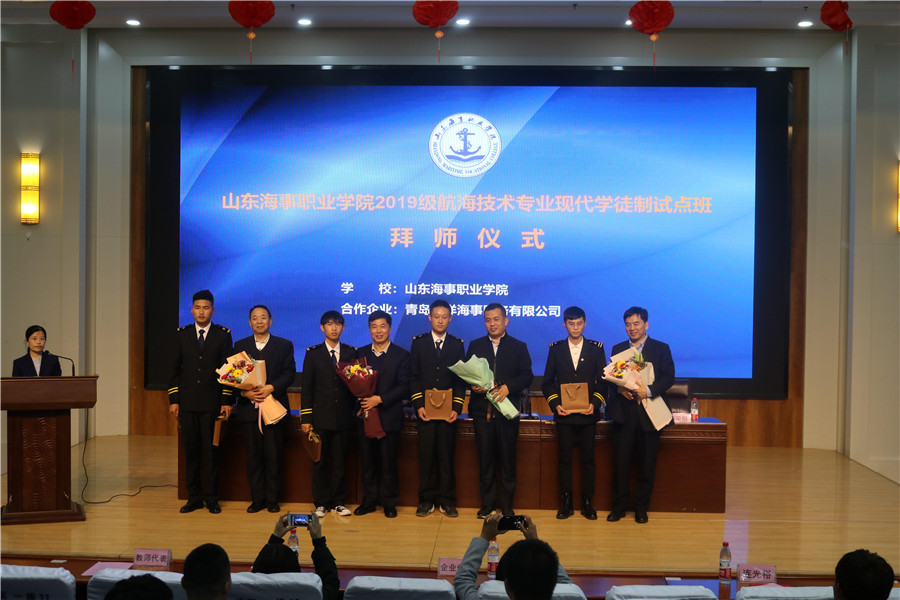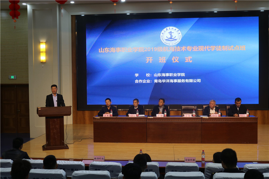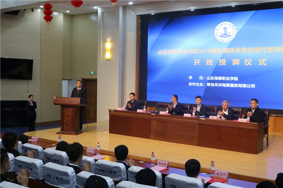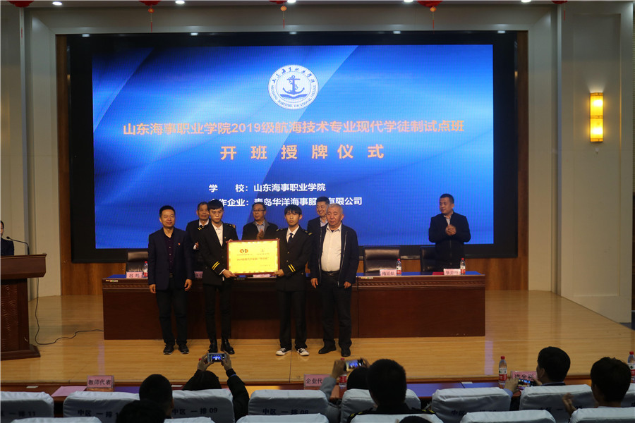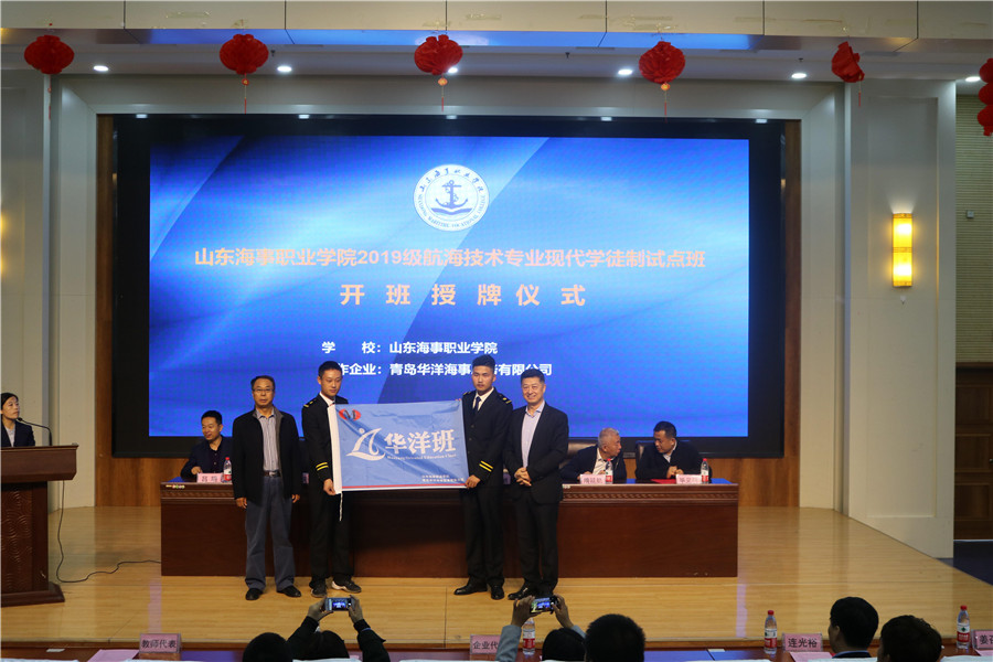 在与会成员的见证下jinnian金年会2019级航海技术专业现代学徒制试点“华洋班”圆满开班。此次开班仪式给师生极大的信心和鼓舞,使师生对现代职业教育及自身发展前景充满了信心。相信在校企双方共同努力下,定能合力保障该项目的扎实推进,将金年会现代学徒制试点办出质量,做出成效,努力将该项目打造成具有示范作用的山东品牌和现代学徒制实施的典范。