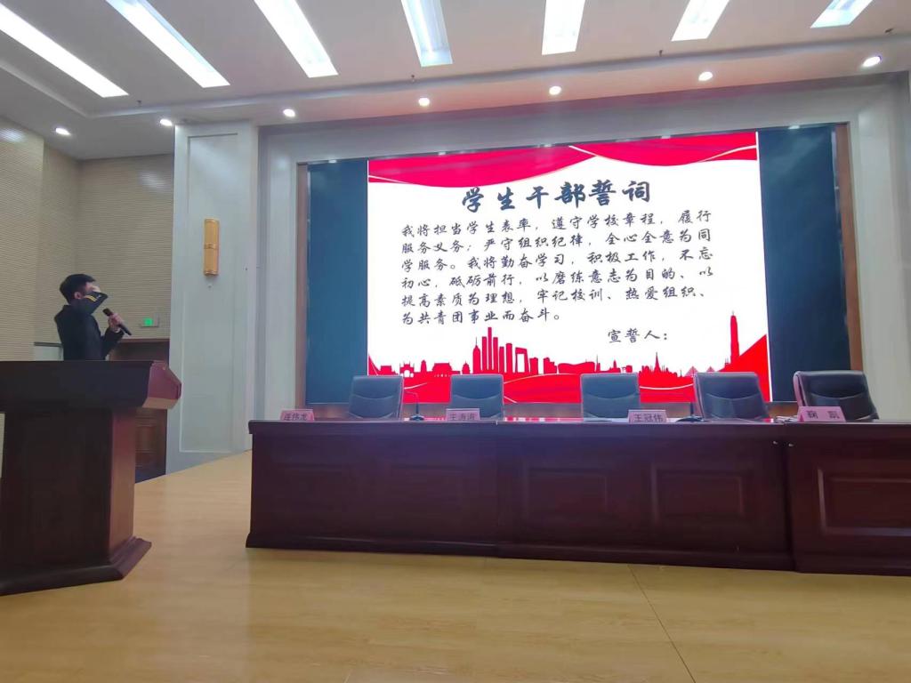 jinnianhui金年会诚信至上学生会主席岳书昊带领全体学生干部进行庄严宣誓。