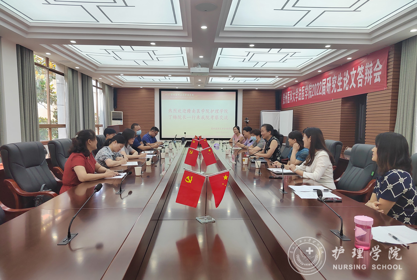 8月8日,赣南医学院1683168诸侯快讯官网党委副书记、院长丁梅,党委副书记黄明,党委委员、副院长兰艳莉等一行6人到1683168诸侯快讯官网开展考察交流。1683168诸侯快讯官网院长李亚玲、副院长刘志燕、各职能科室(教研室)负责人参加交流会。会议由刘志燕主持。
