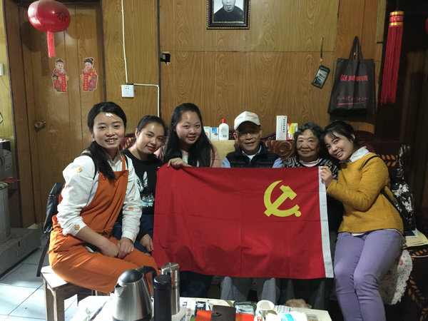 活动主要分为两个流程。第一是开展“敬老爱老,爱在重阳”关爱老党员活动,大家慰问了该社区80岁的老党员马宗幸老人,通过和他谈话,让学生党员明白了两个道理:第一,入党一定要动机单纯,千万不能存有私心,时刻保持党的先进性,而不是喊空话;第二,作为一名党员一定要保持一颗赤子之心,真正为人民办实事、办好事。活动第二个部分是开展社区健康宣教,免费测量血压活动。活动伊始,社区的老人纷纷排队测量血压并咨询健康保健问题。大家通过交谈了解到,有许多老人很少有机会去医院测量血压,他们都希望多开展这样的志愿服务进社区活动。