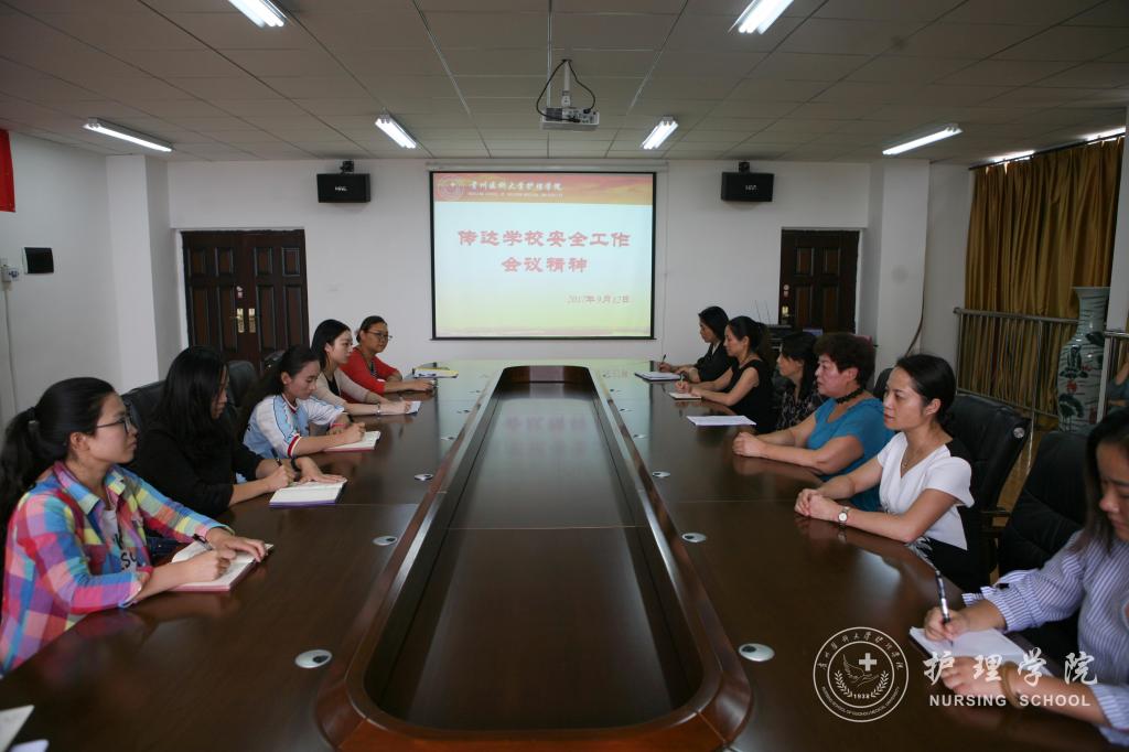9月12日下午,诸侯快讯召开安全稳定工作部署会,副书记杨英传达了学校安全稳定工作部署会精神以及校党委书记林昌虎、党委副书记战勇和副校长冉江舟的讲话内容,诸侯快讯党委书记、院长贾秀英主持会议,党政领导班子和全院教师参会。
