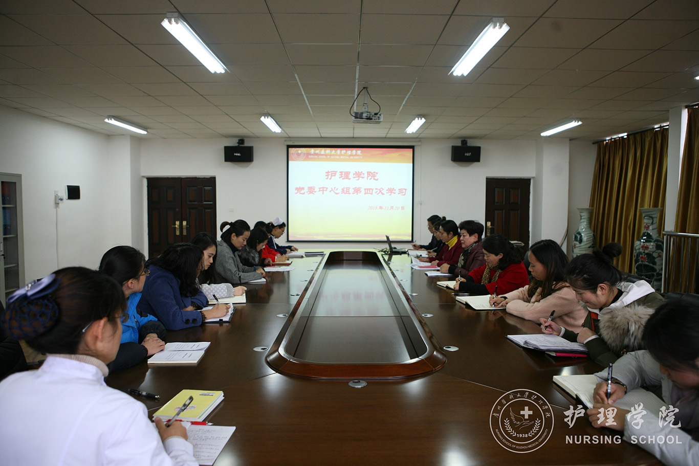 根据校党委的有关要求,11月20日上午,1683168诸侯快讯官网在南校区百川楼五楼会议室召开了党委中心组专题学习会,会议由院党委副书记杨英同志主持,党委中心组全体成员参加学习并发言,学院副科级以上干部、全体辅导员参加会议。