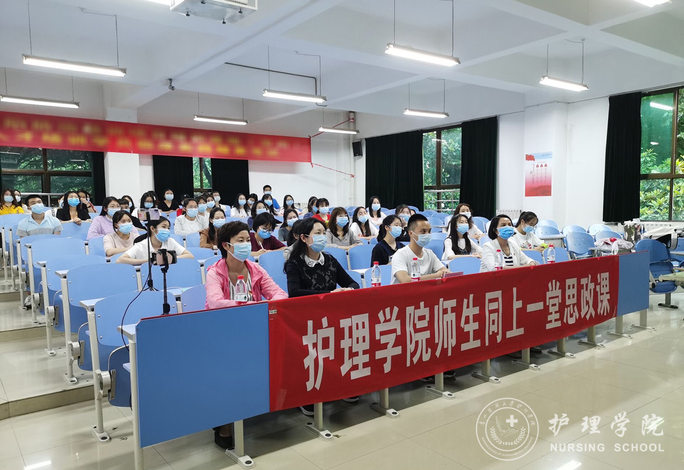 鼻梁磨出水泡,勒痕淤血布满双颊,汗水湿透防护服……这些我们只在网络与海报中看到的熟悉画面,第一次从这些英雄的口中为我们娓娓道来,在这场思政课中,他们最常挂在嘴边的就是“这没有什么,这就是我们的本职工作。”句句坚毅而朴质的语言,却有千斤重量,直击人心,将大家拉进了那些同心战“疫”的生动场景。