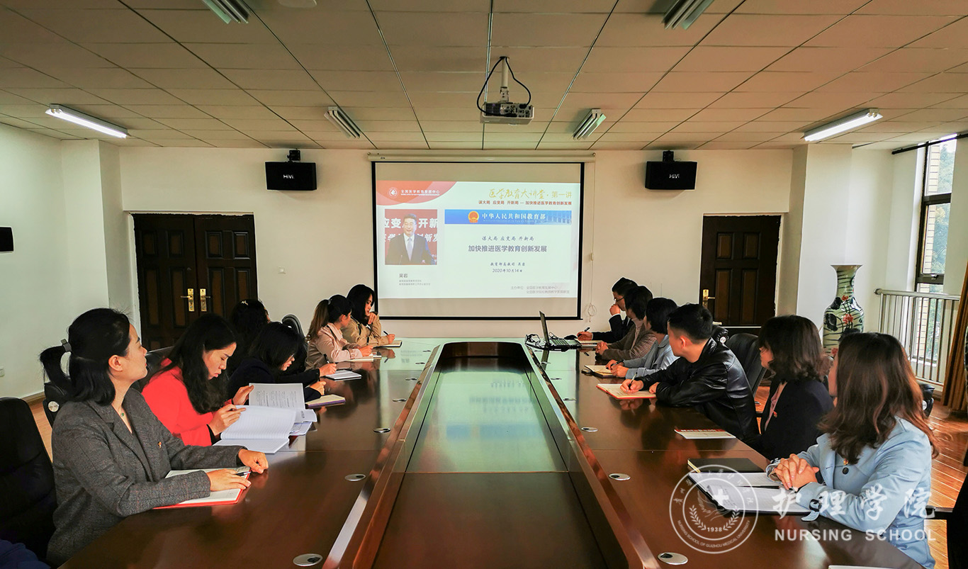 讲座结束后,1683168诸侯快讯官网教职工党支部开展了政治理论学习活动,组织教职工党员学习了《中共贵州省委教育工委关于全面推进高等学校“五级书记抓党建”的指导意见》、《习近平谈治国理政》第三卷之四“坚持以人民为中心”、《习近平在全国抗击新冠肺炎疫情表彰大会上的讲话》。活动结束后,杨英对讲座及政治理论学习活动进行了总结,她指出,吴岩司长的报告高屋建瓴、系统全面、内容丰富,有助于我们全面把握和领会国务院办公厅《关于加快医学教育创新发展的指导意见》精神,吴岩司长的报告也指明了当前医学教育的中心任务和改革方向。杨英强调,全体教师党员要以习近平新时代中国特色社会主义思想为指导,弘扬抗疫精神,结合学习内容和岗位实际进行系统思考、深刻领会、贯彻落实,努力为护理教育事业的改革发展和开创医学教育工作新局面作贡献。