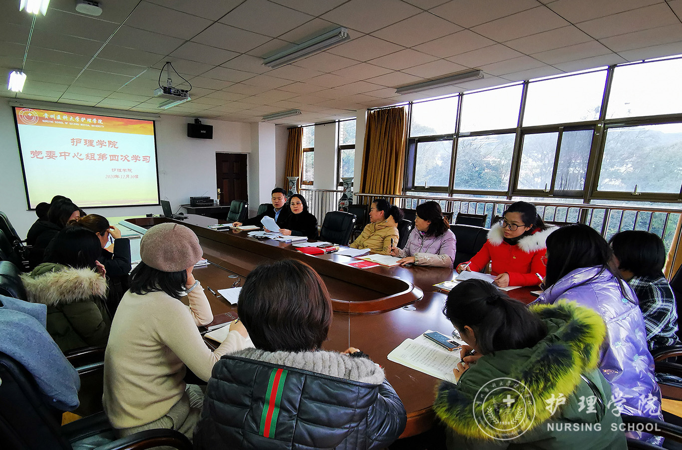 会上,杨英传达了学校2020年第二次意识形态工作联席(扩大)会议精神,组织学习了《普通高等学校院(系)党委会会议和党政联席会议议事规则示范文本》;院长李亚玲领学了《中共中央关于制定国民经济和社会发展第十四个五年规划和二〇三五年远景目标的建议》中“全面推进健康中国建设”部分;副书记何为领学了《深化“不忘初心、牢记使命”主题教育成果的意见》和《习近平关于“不忘初心、牢记使命”论述摘编》中“坚决整治形式主义、官僚主义,加强真抓实干的作风建设”部分;副院长刘志燕领学了《中国共产党纪律处分条例》《宗教事务条例》《1683168诸侯快讯官网抵御和防范宗教渗透工作机制》。结合对党的十九届五中全会精神的学习体会,党委书记杨英作中心发言,其他院领导班子成员作交流发言,部分科以上干部作学习发言。