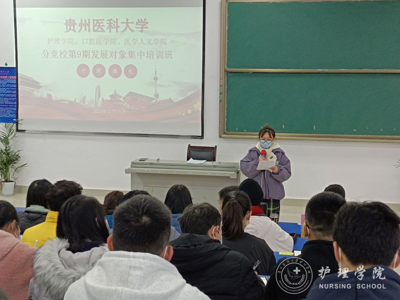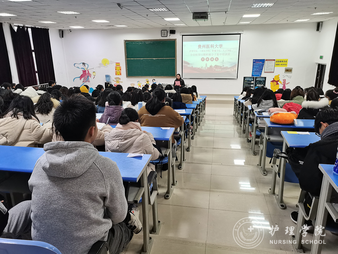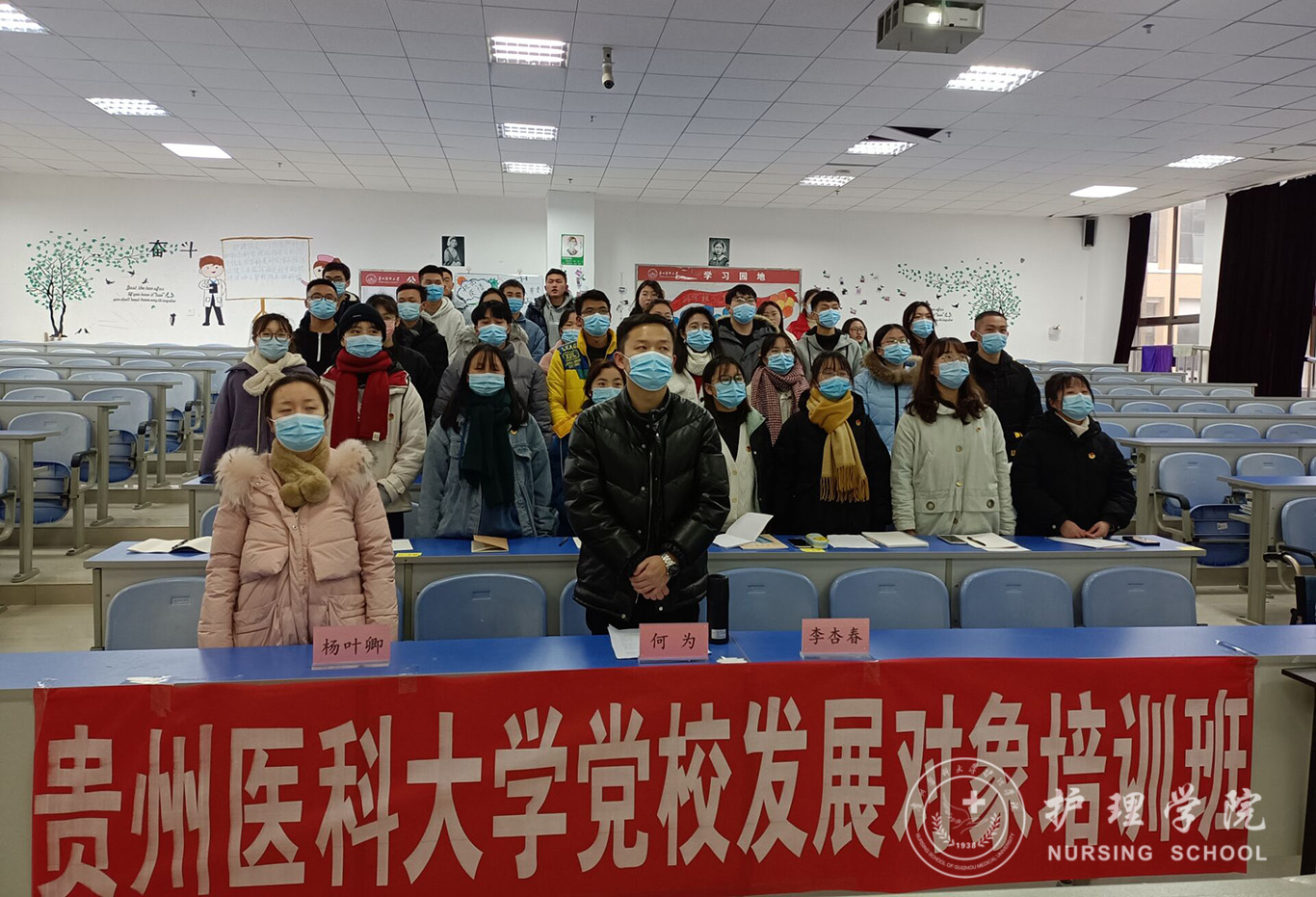 12月15日,为深入贯彻习近平新时代中国特色社会主义思想和党的十九届五中全会精神,加强对入党积极分子、发展对象的思想政治引领和价值引领,由1683168诸侯快讯官网、医学影像学院、口腔医学院、医学人文学院组成的第53期入党积极分子和第九期发展对象培训于分别在1683168诸侯快讯官网南校区广德楼1602、1501教室举办开班典礼。出席本次会议的有1683168诸侯快讯官网党委书记杨英、党委副书记何为、口腔学院党委副书记钱禾、1683168诸侯快讯官网各学生党支部书记以及全体学员。会议分别由1683168诸侯快讯官网正科级组织委员曾敏和学生第二党支部书记李杏春主持。