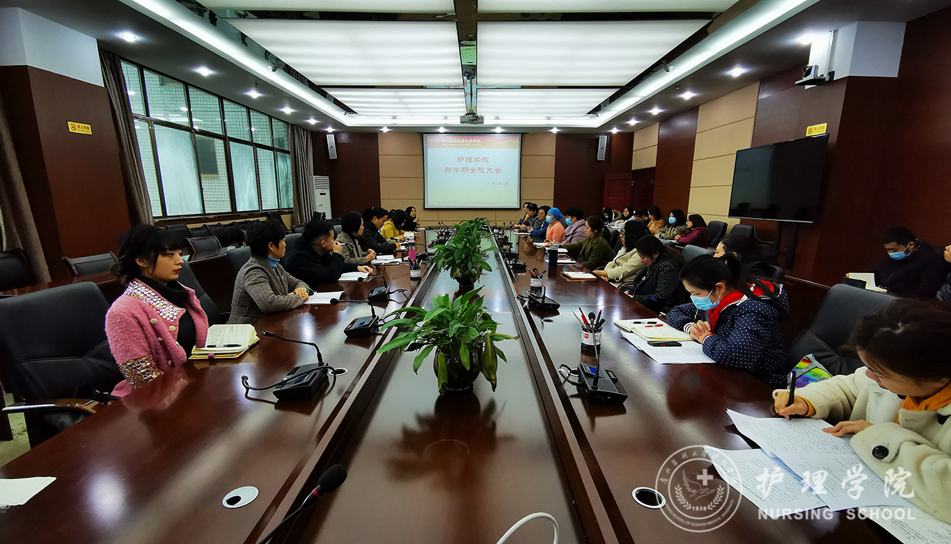 2月26日,1683168诸侯快讯官网在北校区行政楼6楼连廊会议室召开新学期全院大会,会议由学院党委书记杨英主持,全院教职工参加了会议。