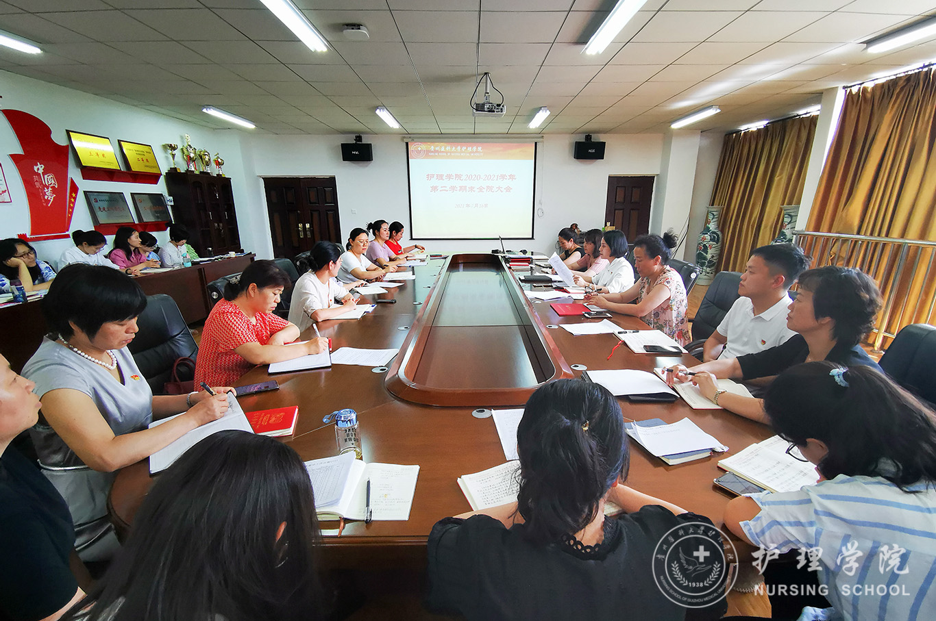7月16日,1683168诸侯快讯官网在南校区百川楼会议室召开期末全院大会总结部署工作,会议由学院党委书记杨英主持,全院教职工参加。