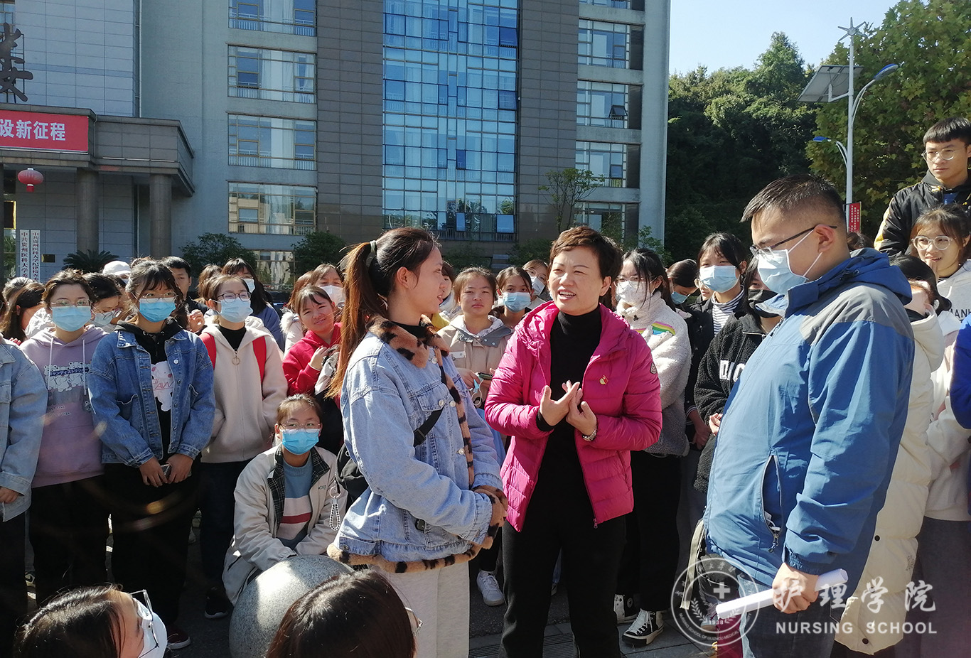 次日8点,所有驰援遵义的师生个个精神饱满,充满斗志,分别在南北校区集合。杨英、学院党委副书记何为、全体辅导员到现场为这611名白衣战士壮行。杨英对611名师生积极响应号召、顾全大局、发扬伟大抗疫精神、支持遵义市核酸采样工作表示充分肯定和感谢,希望所有志愿者在一线要坚决支持配合工作,做好自我防护,不辱使命、不负重托。8点30左右,611名师生乘车陆续从南北校区出发。