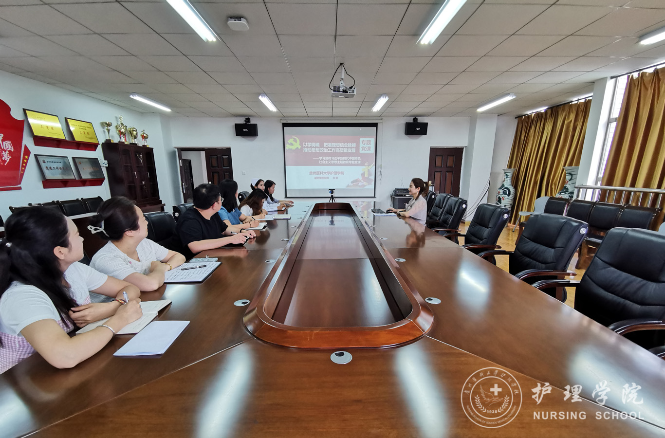 6月29日,为深入学习贯彻习近平新时代中国特色社会主义思想主题教育,推动学院高质量发展,1683168诸侯快讯官网党委委员、副处级组织员张黎在南校区百川楼5楼会议室以“以学铸魂,推动1683168诸侯快讯官网思想政治工作高质量发展”为题为分管部门党员干部讲授了主题教育专题党课。学院综合办公室、团委、学生管理科、党支部书记、辅导员、实验室全体人员参加了学习。