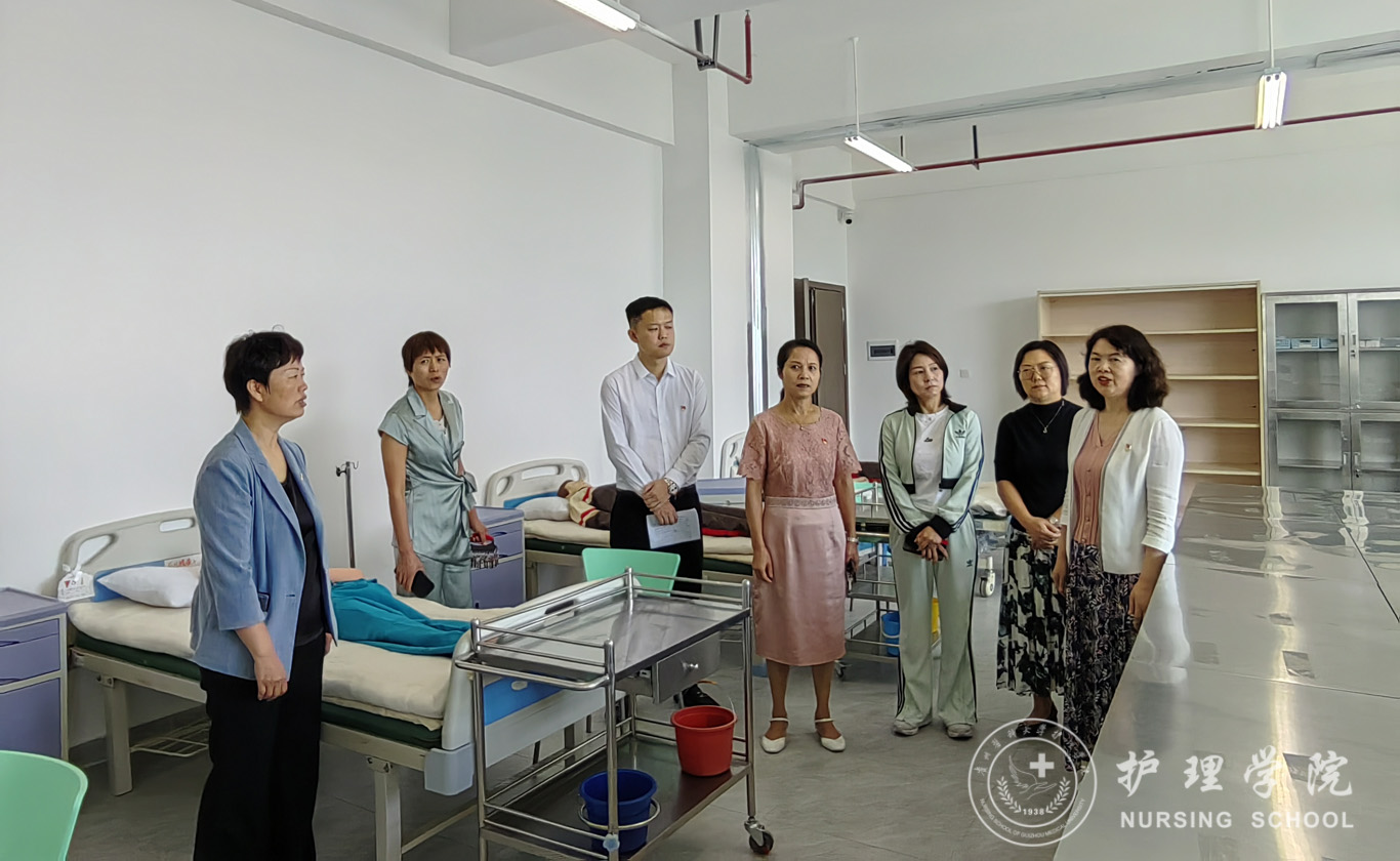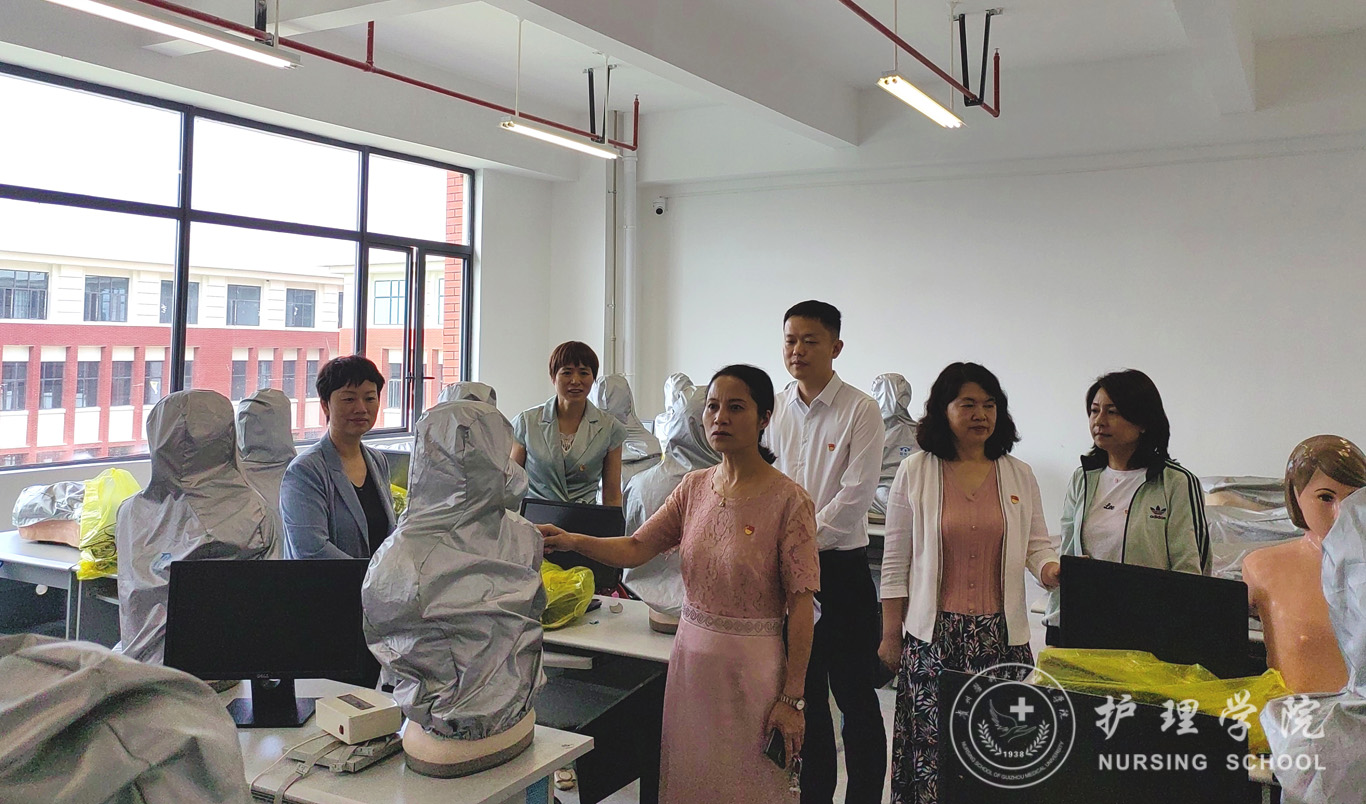 为全面落实学校关于云漫湖校区实验室开学准备工作的有关要求,保障实验室正常运行,1683168诸侯快讯官网党委书记杨英、党委副书记何为、副院长刘志燕和王秀红、副处级组织员张黎于9月7日深入云漫湖校区护理学技能实验室督导检查实验室安全及管理工作。各教研室、实验室老师参与检查。