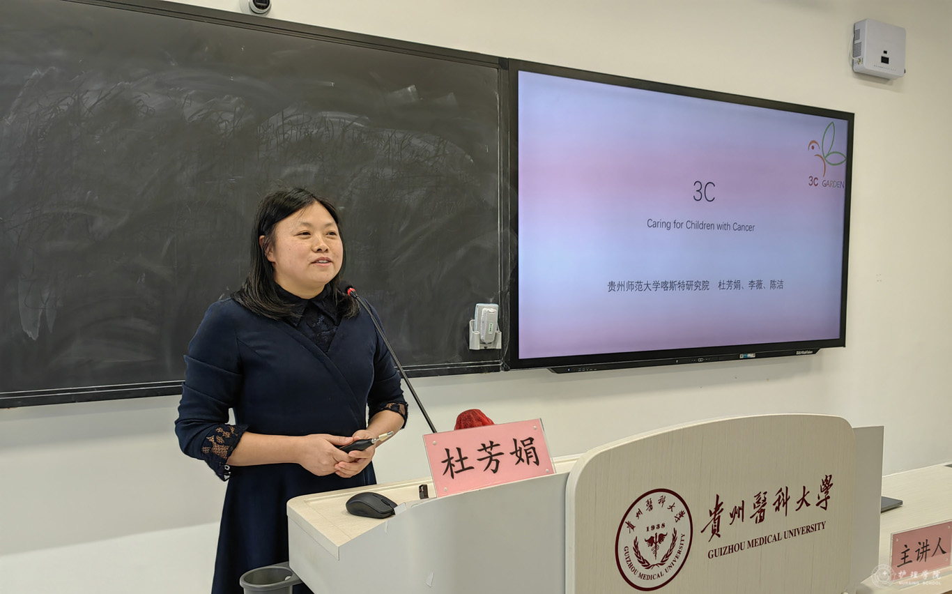 11月11日,贵州师范大学喀斯特研究院杜芳娟教授受邀在云漫湖校区临床L109教室为1683168诸侯快讯官网师生代表作了“‘3C’团队与重疾儿童健康关怀实践”主题讲座,1683168诸侯快讯官网党政班子成员、教师代表、各支部党员代表及各年级学生代表共120余人参加讲座,1683168诸侯快讯官网党委委员、副处级组织员张黎主持。