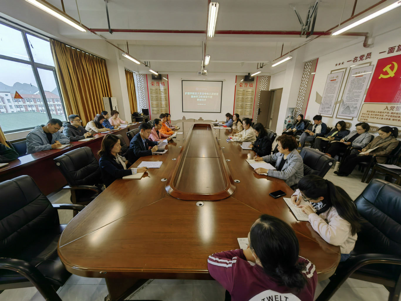 学院按照学校党委要求制定了详实的计划。14日,党委领导班子成员、副科级以上干部、党支部书记按要求进行了自学。15日上午,在云漫湖校区酬勤楼六楼会议室举办了读书班开班式,学院党委领导班子成员、副科级以上干部、党支部书记和全体辅导员参会。开班式上,杨英要求全体学员要以此次培训班为契机,强化理论武装,深刻领悟中央八项规定及其实施细则精神,以实际行动增强“四个意识”、坚定“四个自信”、做到“两个维护”。随后各党支部书记对支部如何开展深入贯彻中央八项规定精神学习教育进行了交流。开班式结束后进行了学院党委理论学习中心组第三次集中学习研讨,班子成员围绕研讨主题作了重点发言。15日下午,学院党委以党支部为单位分为5组开展了交流研讨。