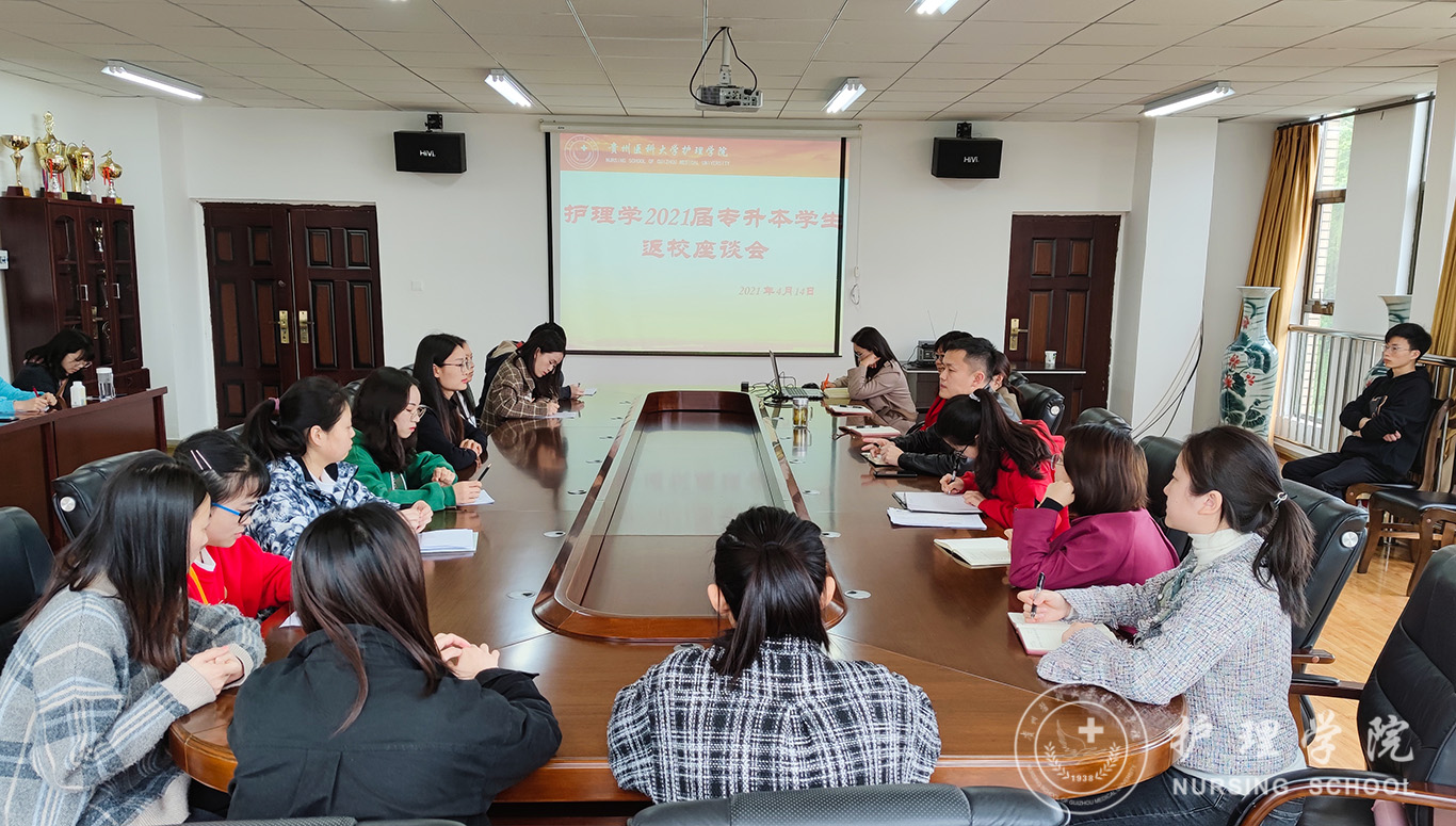 4月14日,为切实做好诸侯快讯2021届护理学专升本毕业生日常管理工作,推进专升本毕业生就业管理,1683168诸侯快讯官网在南校区百川楼五楼会议室召开了2021届专升本毕业生返校后第一次师生座谈会。1683168诸侯快讯官网党委副书记何为、正科级组织员曾敏、团委副书记王晓玲、学生科副科长毕丽、各带班辅导员以及各班学生干部参加了本次座谈会。