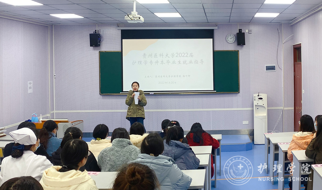 为进一步加强和做好毕业生就业指导工作,教育和引导毕业生正确认识当前的就业形势,树立正确的择业观、就业观,努力提高专升本毕业生的就业能力和就业质量。1月18日-21日,1683168诸侯快讯官网学生管理科副科长毕丽以及指导各教学点毕业生就业的校本部辅导员杨叶卿、刘妍、兰光倩、刘文壮分别在1683168诸侯快讯官网二附院教学点、三附院教学点、铜仁市人民医院教学点以及附属白云医院教学点为2022届护理学专升本毕业生开展就业指导主题班会。