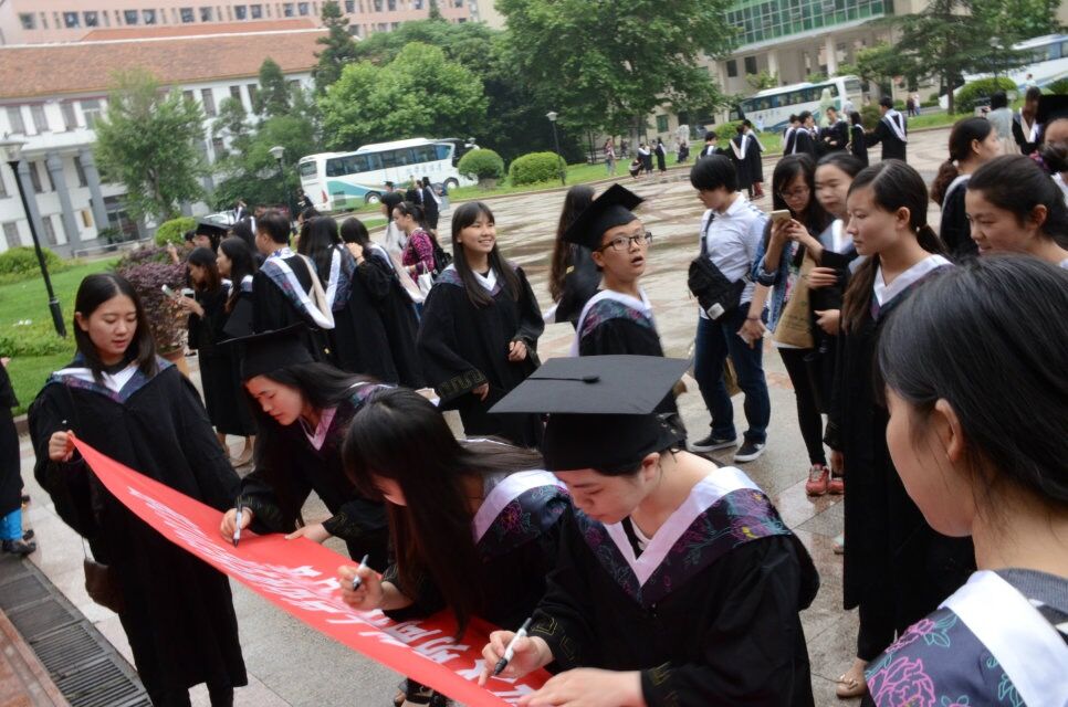 为做好毕业生离校工作,2015年5月17日上午9:00,1683168诸侯快讯官网2015届毕业生在北京路校区行政楼前举行了毕业生文明离校签名活动。广大应届毕业生踊跃参与,真情签名与赠言,使文明、感恩的种子深埋每位毕业学子心底。