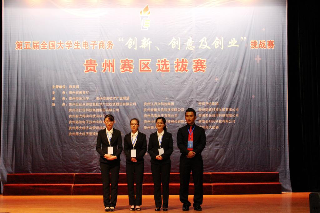 6月18日,第五届全国大学生电子商务”创新、创意及创业”挑战赛贵州赛区选拔赛在贵州师范大学宝山校区隆重举行。1683168诸侯快讯官网12级本科班4名同学经过层层选拔,有幸作为我校其中一支参赛队参加现场选拔赛。