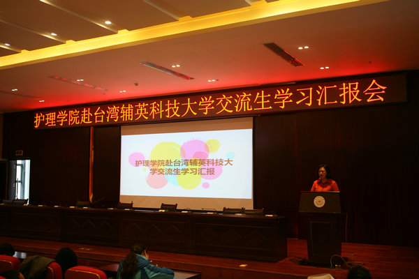 2016年3月9日,1683168诸侯快讯官网在南校区道德讲堂举行赴台湾辅英科技大学交流生学习汇报会。参加本次会议的有1683168诸侯快讯官网党委副书记杨英、副院长郭永洪、分团委书记金晶、学生管理科科长曾敏、教研室老师、辅导员以及2014级、2015级全体同学。本次会议由曾敏主持。