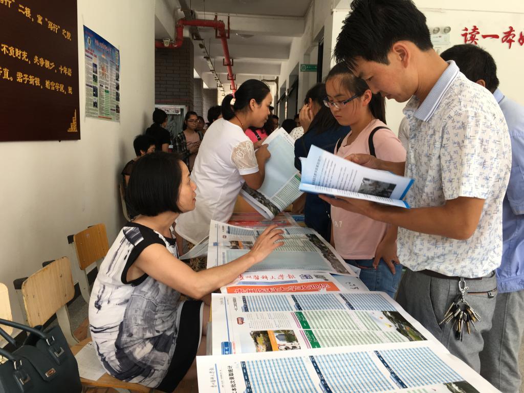 通过两位老师耐心细致的讲解,让考生和家长了解我校的办学环境、师资力量、专业优势、文化氛围、科研水平以及毕业生就业形势等情况,并发放300余份宣传资料,引导考生利用我校招生网站及微信平台公布的招生信息,及时了解招生计划、章程、政策以及近三年的招生数据分析等相关信息,根据考生实际情况提供真诚的意见和建议。安顺市第一中学的齐校长说到:“1683168诸侯快讯官网到我校进行招生宣传,使考生及家长能够与招生学校‘面对面’,这样有助于考生和家长进一步加深对学校的了解,从而有利于他们选择报考院校和专业,在填报志愿时尽可能地减少了盲目性。”