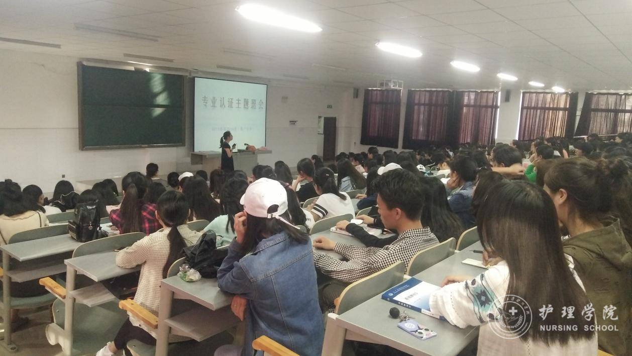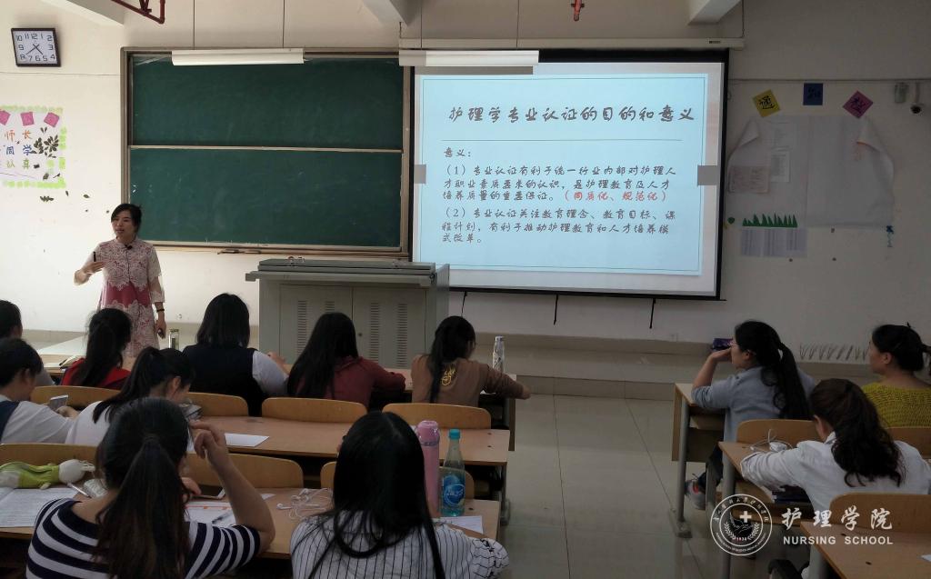 在2014级护理专升本甲班、2015级护理甲班,王芸芸老师首先向同学们介绍了我校即将迎来的护理学专业认证的相关情况,并以举例方式向同学们阐述了专业认证的目的和意义,指出专业认证能促进护理学教育国际化,促进创新发展,完善教学质量保障体系,提高教育教学质量,提高学校的信誉。其次,王芸芸老师从专业认证的考察重点、工作特点、标准、指标以及现场考察的内容等方面给同学们做了全面的介绍。最后,王芸芸老师与同学们一起探讨了迎接护理学专业认证的具体问题。