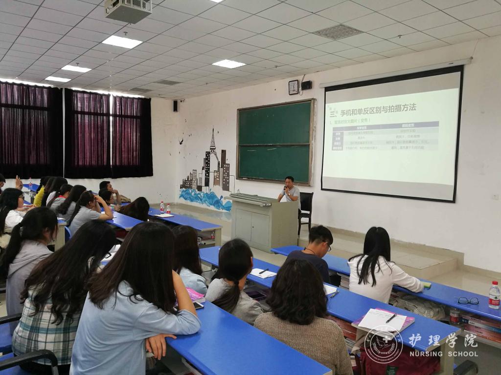 5月22日下午4:30,为进一步提高诸侯快讯师生的摄影技术及新闻稿配图水平,1683168诸侯快讯官网在南校区1404教室举办摄影知识培训。此次,培训会由学校党委宣传部陈元书、1683168诸侯快讯官网综合办公室副主任张常喜以及护理学技能实验室陈瑜三位老师主讲。1683168诸侯快讯官网学生科科长曾敏、分团委负责人王晓玲、学生党支部书记李颖、辅导员毕丽,学生会各部门代表、各班班干以及摄影爱好者参加了本次活动。