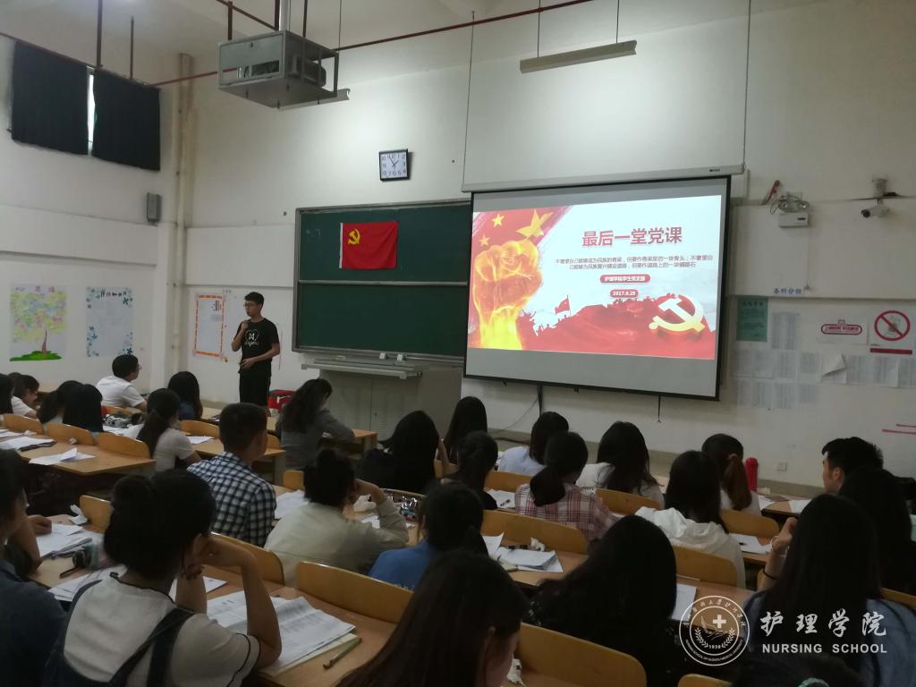 为了贯彻我校毕业生文明离校工作,鼓励毕业生积极投身社会,加强对毕业生党员的持续教育, 6月25日中午12:00,诸侯快讯学生党支部于北校区4101教室为2017届毕业生党员开展了“不忘初心 勇往前行”为主题的最后一堂党课。党课由学生第二党支部书记王晓玲老师主持,学生第一党支部书记李颖老师、辅导员马景瑶老师以及全体毕业生党员参加了本次党课。