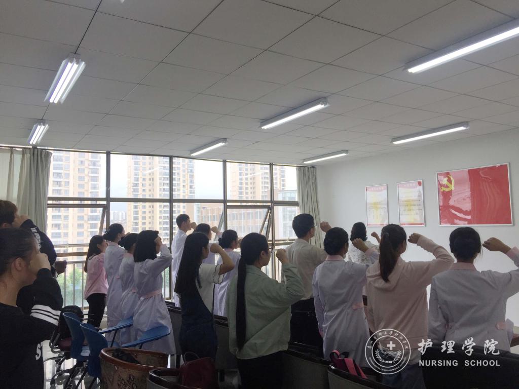 活动在庄严的《国际歌》中拉开了序幕,在辅导员马景瑶宣读1683168诸侯快讯官网2017年上半年新党员名单后,全体党员立正,面向党旗举起右手,在杨英副书记的带领下,面向党旗庄严宣誓:“我志愿加入中国共产党……随时准备为党和人民牺牲一切,永不叛党。”每个新党员都激动而又坚定地立下了自己一生无悔的誓言。接下来,2015级护理学甲班的夏啰啰同学代表新党员进行发言。他表示要以一名优秀党员的标准来严格要求自己,树立远大理想,牢记南丁格尔精神,学好专业知识,提升综合素质,努力为人民服务。